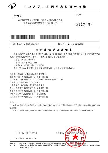 2016年3月16日,山东泰瑞丰新材料有限公司所属“高焊接强度冰箱密封条用热塑性弹性体材料及其制备方法”获得由“中华人民共和国国家知识产权局”颁发的《发明专利证书》。该证书自2015年5月19日,由发明人王彦富和王彦君共同发起申请。